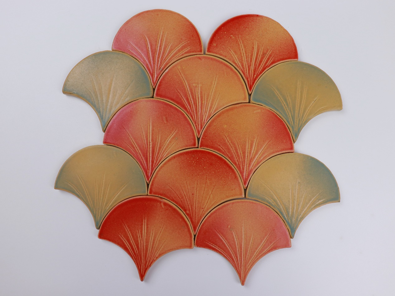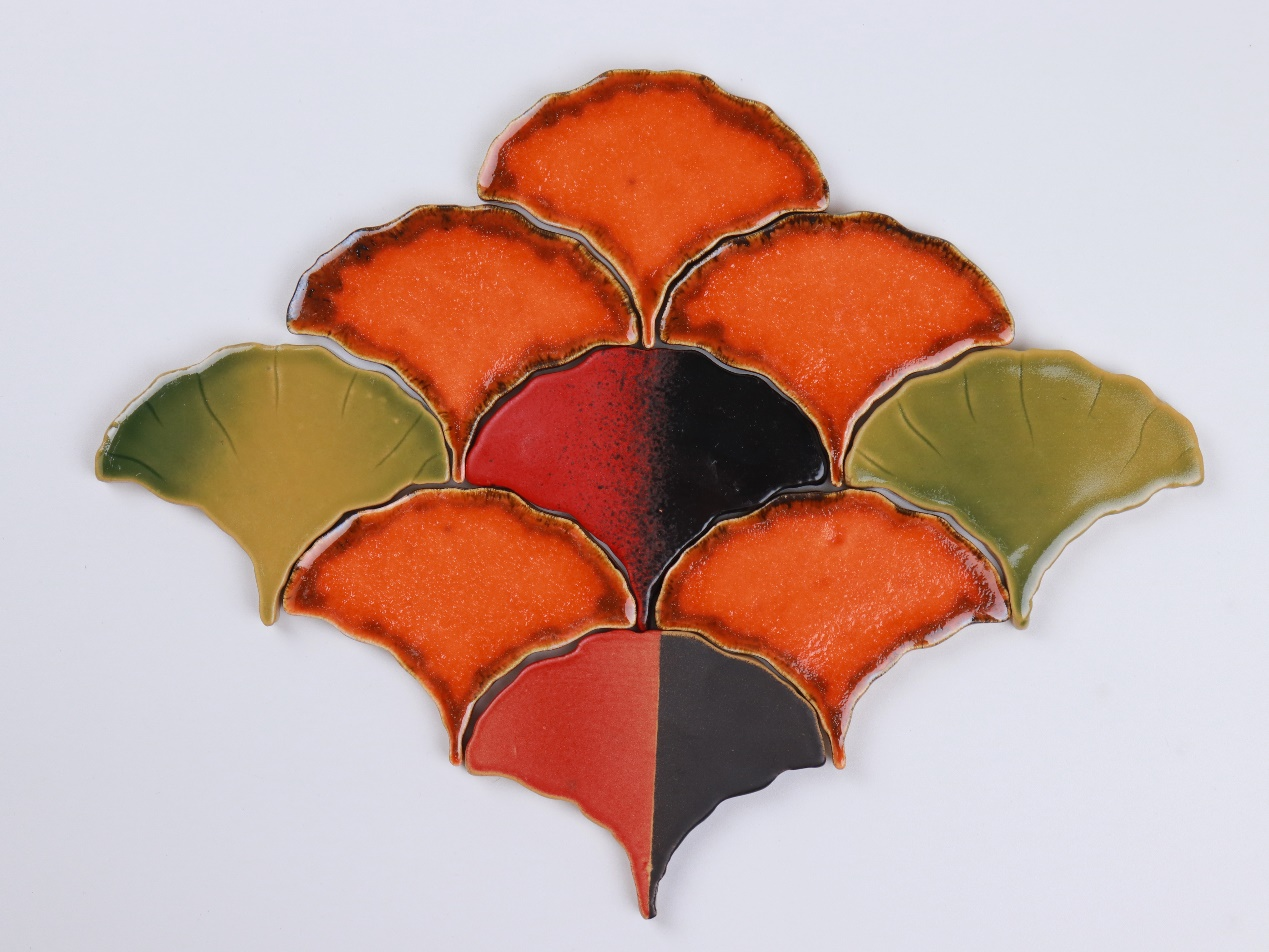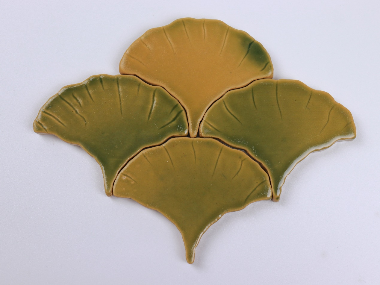 我們采用手工濕泥成型,手工雕刻、手工施釉、繪制,藝術(shù)的語(yǔ)言還原自然中銀杏的肌理和質(zhì)感,從春季盎然勃發(fā)的綠到秋日里璀璨飄落的黃,磚面表面光滑、紋理自然獨(dú)特,每片銀杏都是獨(dú)一無(wú)二的存在。