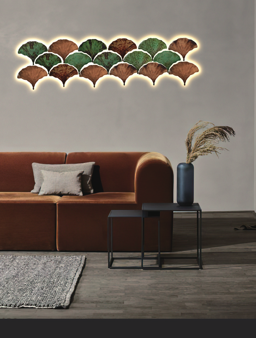 阿只尼(成都市)照明科技有限公司開(kāi)發(fā)的銀杏葉陶藝間接光源,300MM款