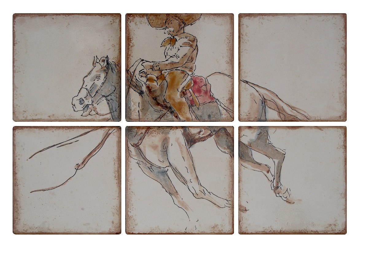 從繪制技法上來(lái)講。傳統(tǒng)“瓷板畫”一般采用寫意畫法、工筆畫法、折枝畫法、水點(diǎn)畫法等中國(guó)國(guó)畫技法,作品多顯得清新雅麗,素雅高潔,有著很強(qiáng)的地域性?!?/span>VEVI,畫出來(lái)的瓷磚”系列產(chǎn)品,主要采用的繪制技法是西式油畫技法中的直接著色法為主,即先在磚面上作出圖案輪廓,再根據(jù)色彩需要進(jìn)行作色;對(duì)部分瓷磚邊緣顏色的加深繪制,則采用了成都邛窯三彩古老的邛彩技法,用釉下彩斑點(diǎn)紋或條形紋處理,色彩飽和度高,呈現(xiàn)出古典氛圍,具有強(qiáng)烈的藝術(shù)感染力。