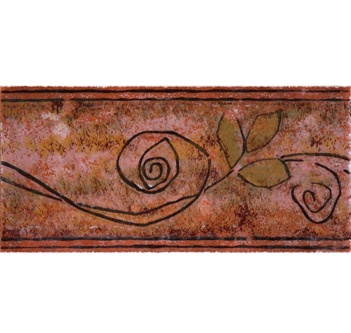 這款磚為西班牙紅裙舞的配套花線設(shè)計,為玫瑰紋。整個畫面色彩為玫瑰深紅,用簡單的線條勾勒出了玫瑰的造型,寥寥數(shù)筆將玫瑰的靈動感表現(xiàn)的淋漓盡致,使得紅裙舞的力量融入到了產(chǎn)品之中,讓生命的力量如花綻放。