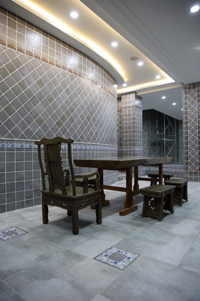 于是,在北京參觀考察完后,藝術(shù)陶瓷研究所直飛杭州,找到了蘇州陸慕御窯遺址,近距離的觀察并深入了解了金磚的制作工藝、色彩構(gòu)成、藝術(shù)特點(diǎn)、歷史現(xiàn)狀,給設(shè)計(jì)師們留下了深刻的印象;于此同時,研究所在杭州胡雪巖故居,蘇州拙政園,以及由世界建筑大師貝聿銘先生晚年設(shè)計(jì)的蘇州博物館都找到了大量的灰色方磚的使用痕跡?;疑?,這種大融合的色彩,成為了當(dāng)年威尼斯商人瓷磚藝術(shù)陶瓷研究所最終尋找到的最美建筑色彩,這也直接促使了威尼斯商人瓷磚"經(jīng)典煙灰"系列產(chǎn)品的誕生。