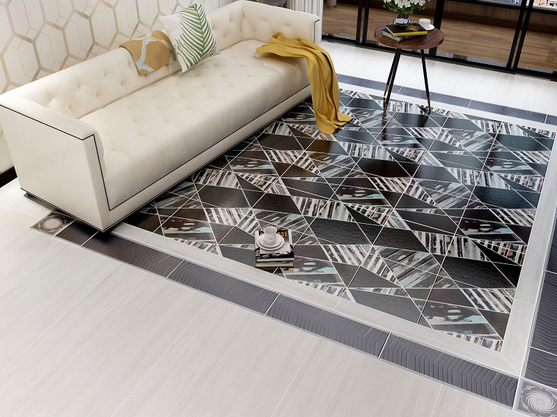 用現(xiàn)代簡約主義的色彩和形式去致敬巴洛克時期的人文情懷,將鑲嵌和拼貼手法引入本次產(chǎn)品設(shè)計(jì),將藝術(shù)家霍曉先生的書法作品“打破”作為題材,設(shè)計(jì)出了符合當(dāng)代審美的“嵌影”系列。磚面釉色的表現(xiàn)效果不是堆砌而是流動,像是在渲染一幅巨型的畫作,色彩在其中慢慢蔓延。漸變的色彩層次,幾何圖形的分割組合,黑白兩種經(jīng)典顏色,創(chuàng)造出不會輕易過時的藝術(shù)新品。